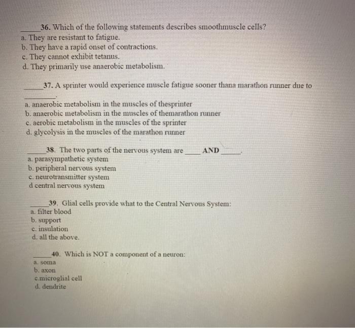 Up to 20 cash back Which of the following statements is correct concerning smooth muscle tissue. They primarily use anaerobic metabolism. Which of the following statements describes smoothmuscle cells.